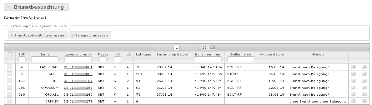 Nur in den Aktionslisten Wochenplan, zu 1.Besamung und Brunstbeobachtung