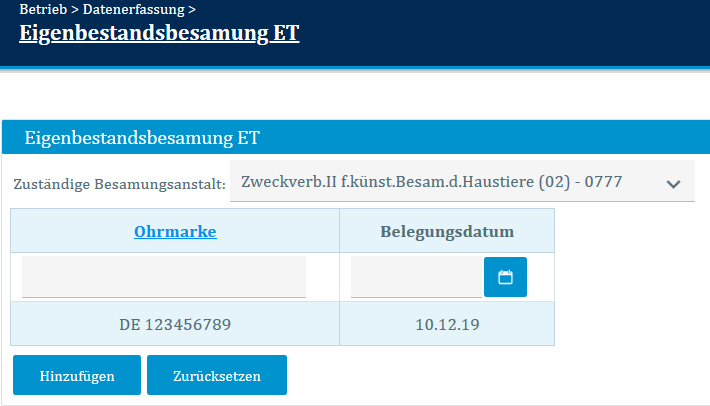 1. Eingabe der Ohrmarke: