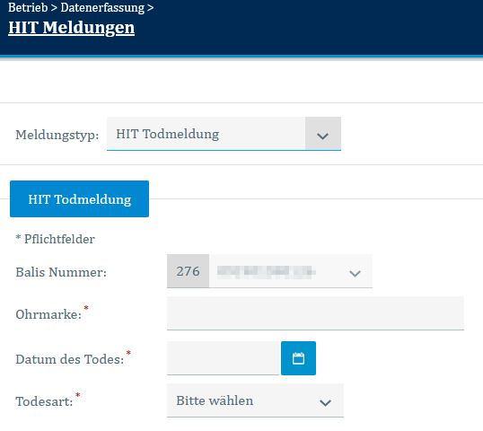 Unter der Funktion Todmeldung melden Sie den Tod eines Tieres auf Ihrem Betrieb.