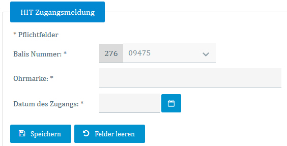 Unter der Funktion Zugangsmeldung können Sie den Zugang eines Tieres auf Ihren Betrieb melden.