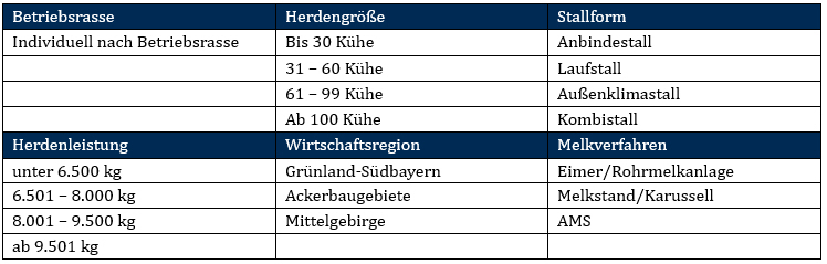 (Einteilung erfolgt an Hand der beim LKV Bayern gespeicherten Ausstattung Ihres Betriebes):