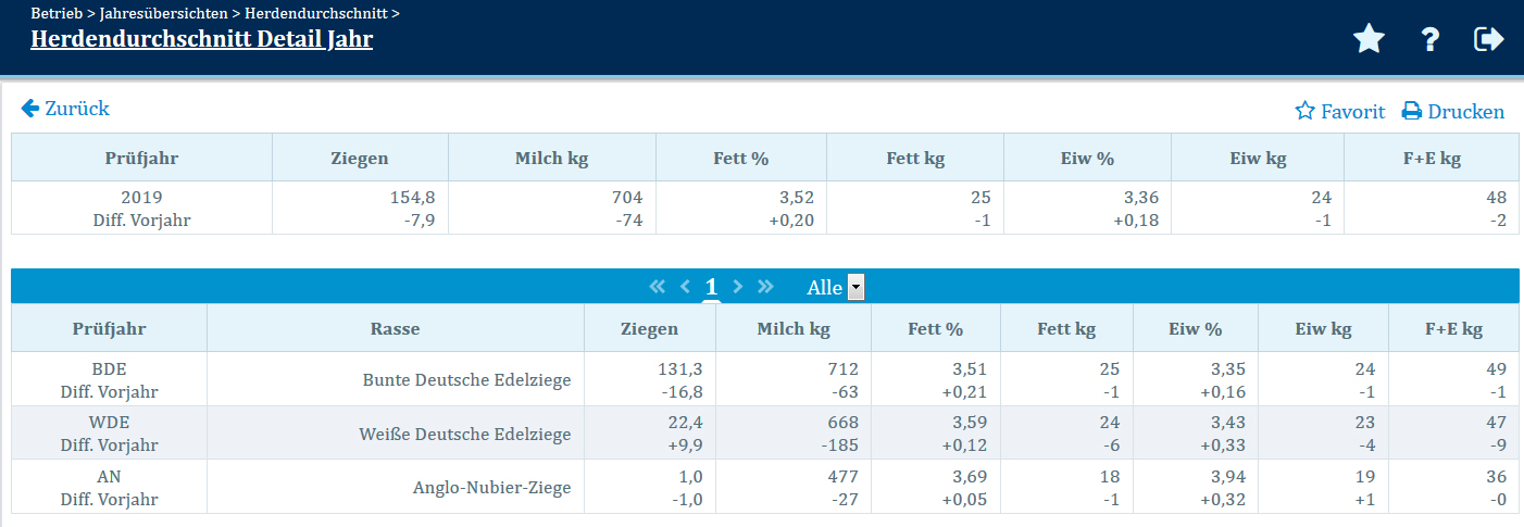Herdendurchschnitt Detail Jahr